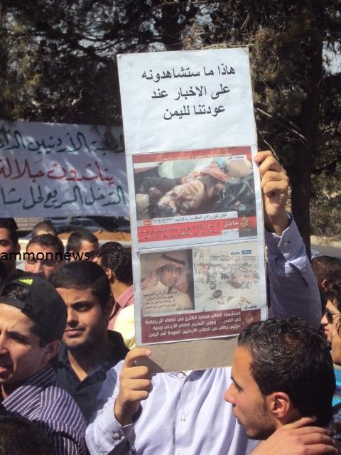 بصراحة الي راحو يدرسو باليمن وما عجبهم البلد وطموحاتهم اكبر منه حجمهم فاليمن اولى بهم الاردن ما قصر مع حدى فيهم اعطاهم قبولات حسب معدلاتهم بس هم ما عجبهم ذلك والان بع ما وقع الفاس باللرأس جاين يتضاهرو شكلهم كانو باليمن يتعلموا كيف يمشوبالمظاهرات ويقودها
