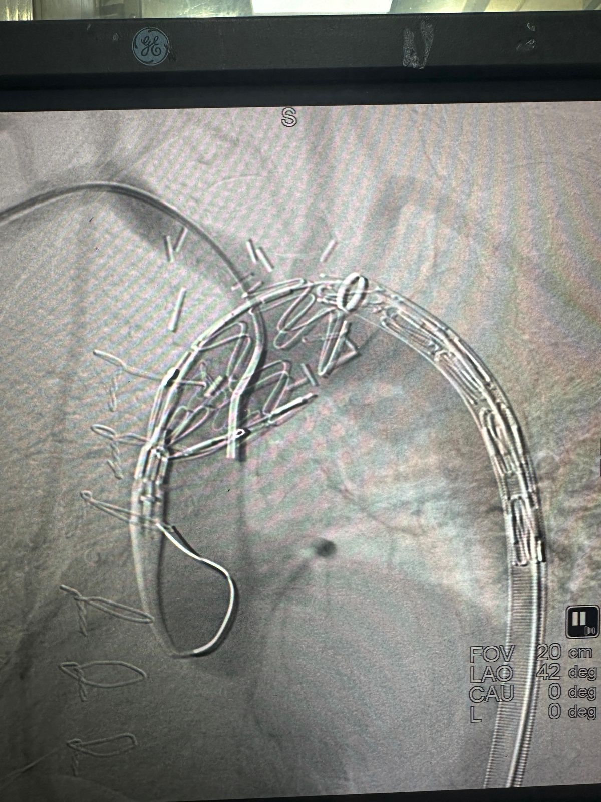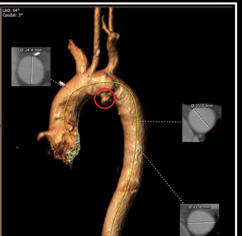 وكان المريض كان قد خضع سابقاً لجراحة مفتوحة لترميم الشريان الأبهري، وعانى لاحقاً من نوبات نزيف متكررة انتهت بنزيف حاد استدعى تدخلاً عاجلاً