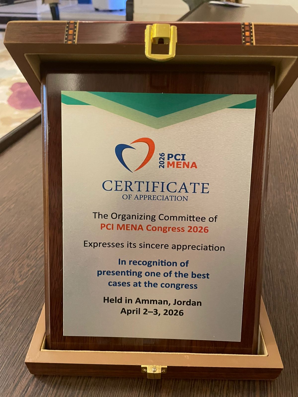عمون - تم تكريم الدكتور حازم حبوب، استشاري الأشعة الداخلية مؤتمر PCI MENA Congress 2026 تقديراً لعرضه واحدة من أفضل الحالات الطبية خلال المؤتمر.
