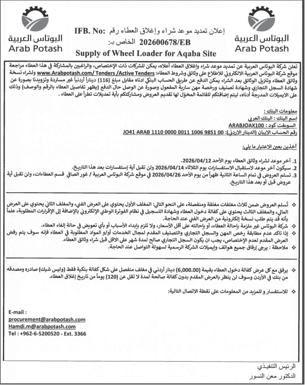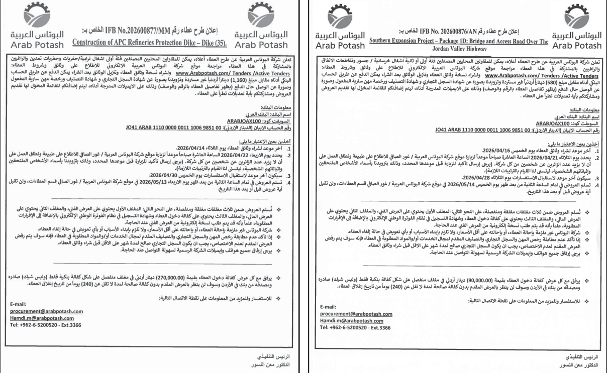 عطاءات صادرة عن شركة البوتاس