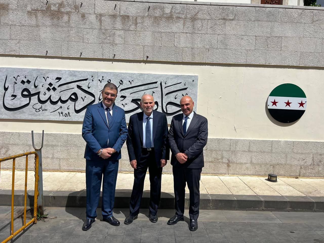 وكان في استقبال الوفد رئيس جامعة دمشق الأستاذ الدكتور مصطفى صائم الدهر، بحضور نواب الرئيس وعمداء الكليات ومديري الدوائر، حيث جرى لقاء رسمي في مكتب رئاسة الجامعة عكس مستوى التقدير المتبادل بين الجانبين، وفتح آفاقًا واسعة للتعاون المشترك.