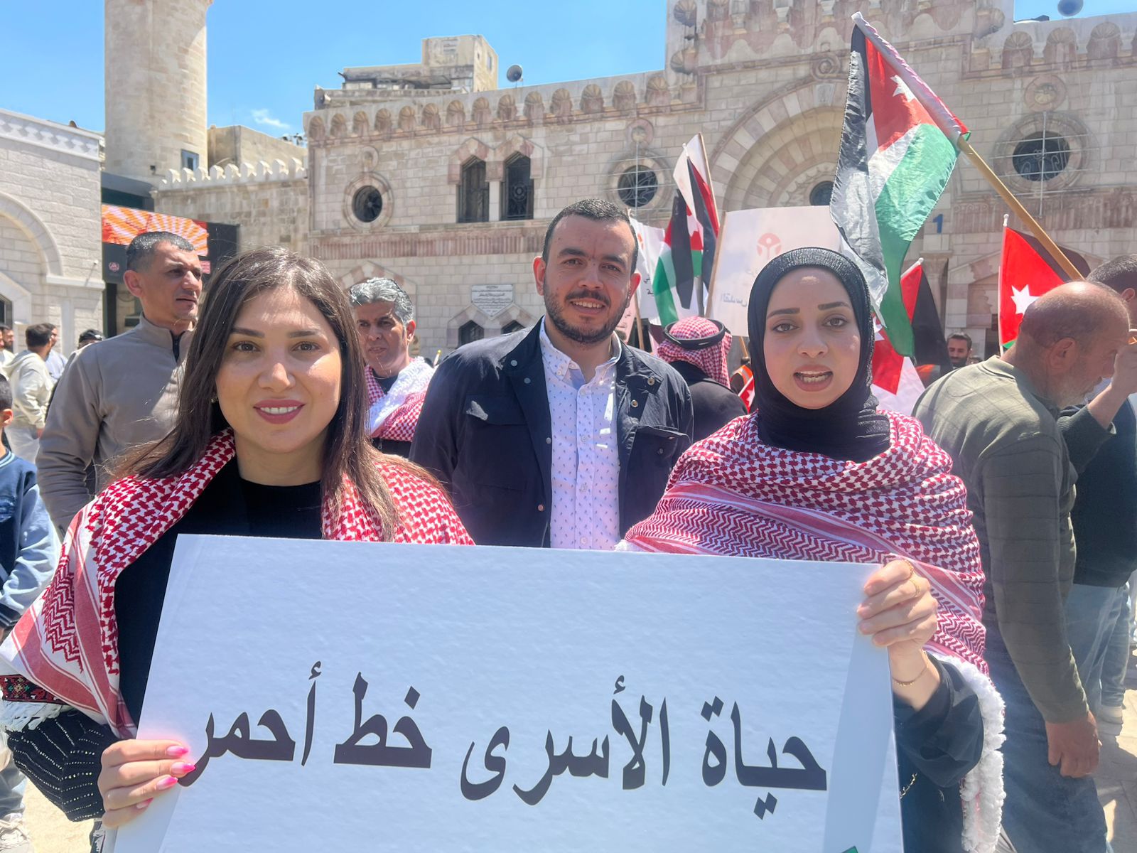 ورفع المشاركون خلال المسيرة شعارات تؤكد أن لا أمن ولا استقرار في المنطقة دون حل عادل وشامل للقضية الفلسطينية، في مشهد جسّد وحدة الموقف الشعبي والحزبي والوطني الأردني، ورسّخ رسالة واضحة بأن الأردن سيبقى ثابتًا في دعمه لفلسطين، وفي رفضه لكل مشاريع الاحتلال وعدوانه وتشريعاته الباطلة.