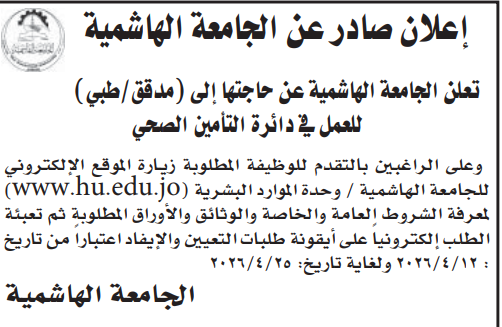 وظيفة شاغرة لدى الجامعة الهاشمية