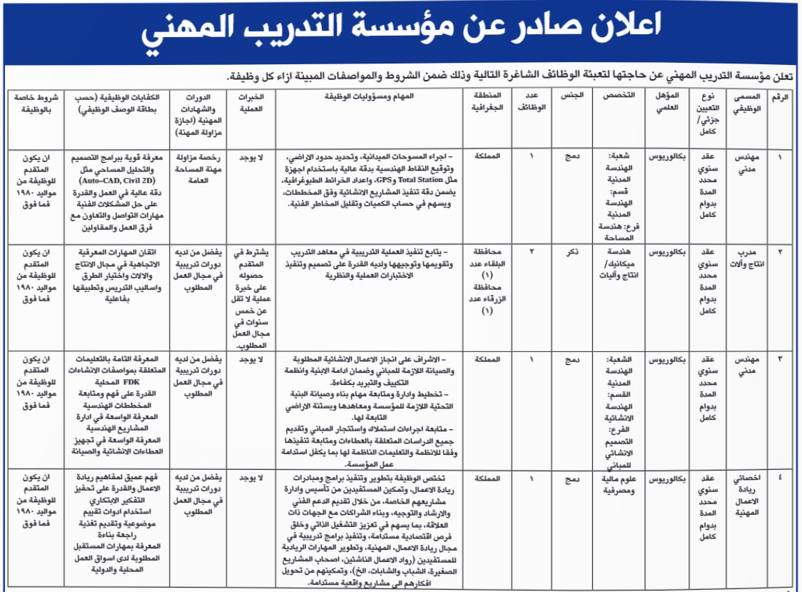 عمون - أعلنت وزارات ومؤسسات حكومية اليوم الأحد، عن حاجتها لتعبئة وظائف شاغرة.