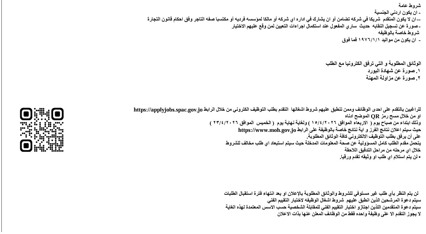 وأعلنت الوزارة عن حاجتها لتعبئة الوظائف الشاغرة التالية: