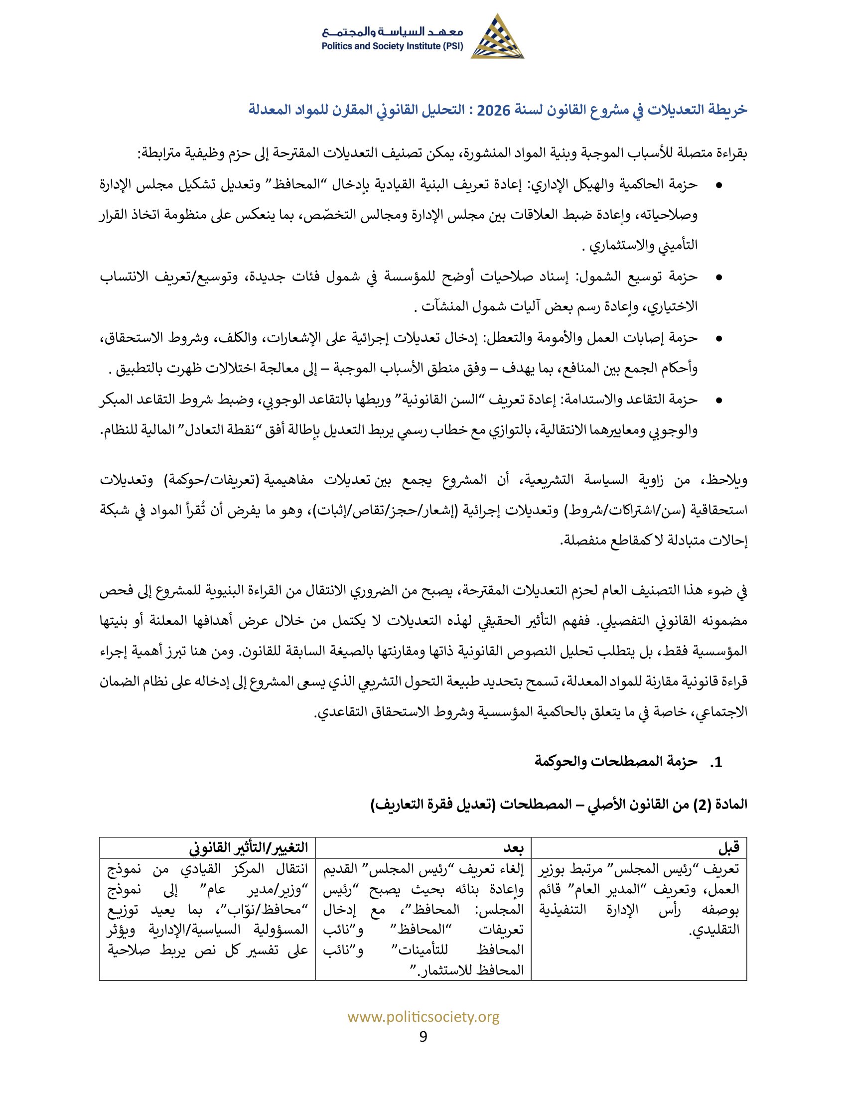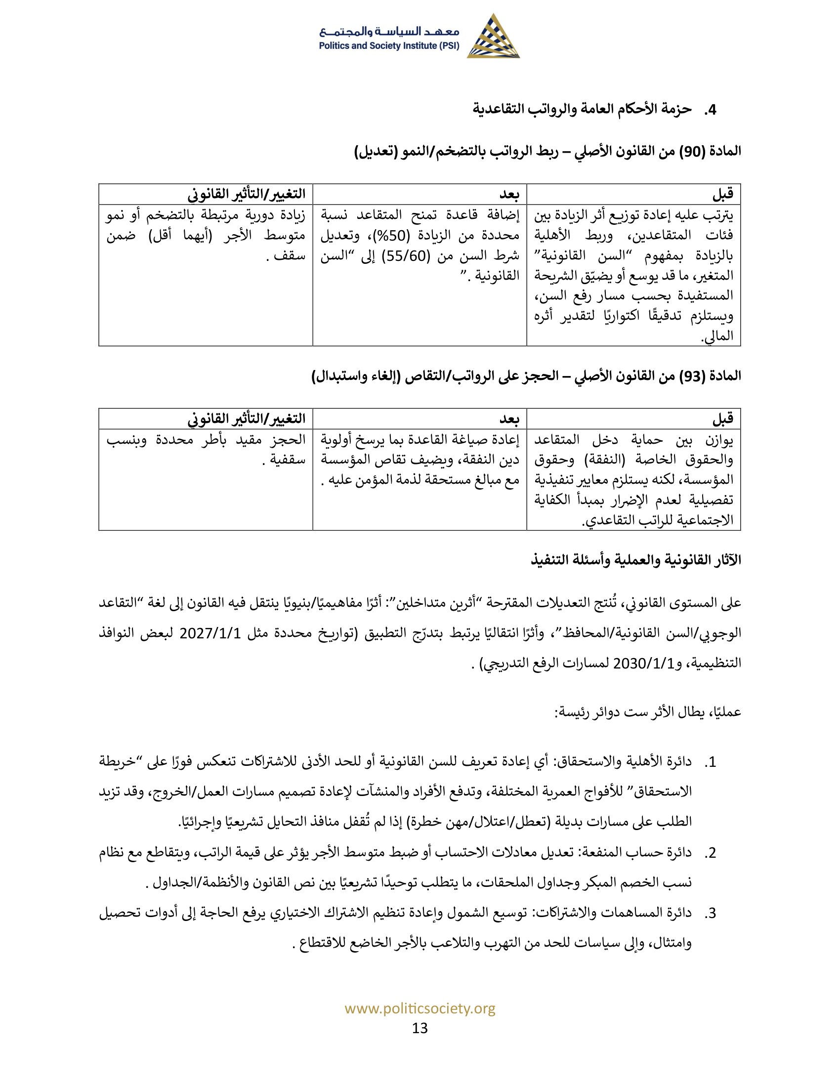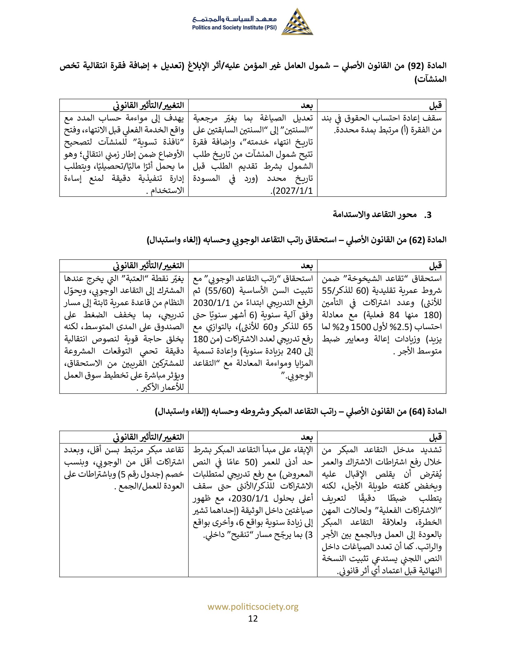 * التعديلات المقترحة ليست تقنية فقط، بل تمثل إعادة هندسة للنظام (حوكمة، شمول، تقاعد، استدامة)