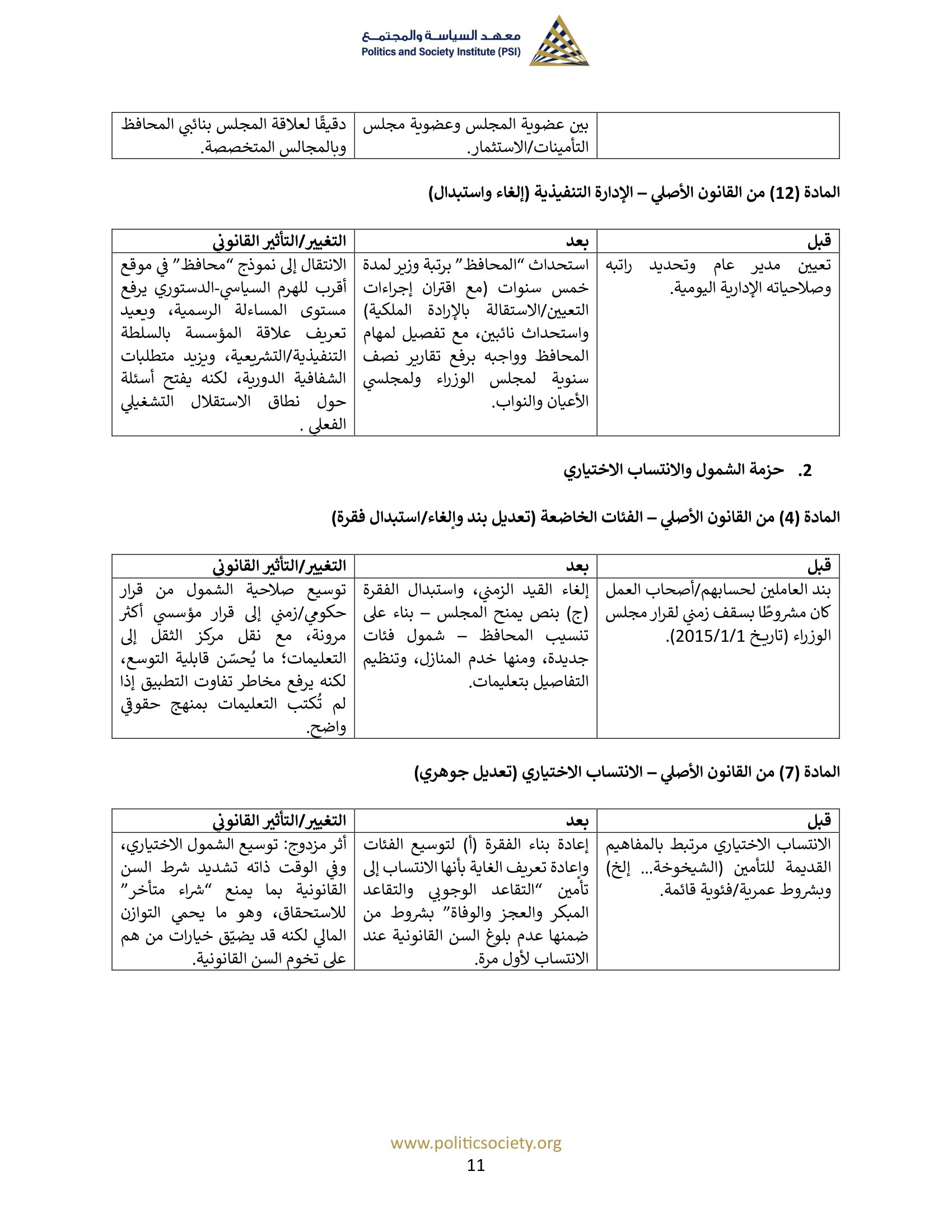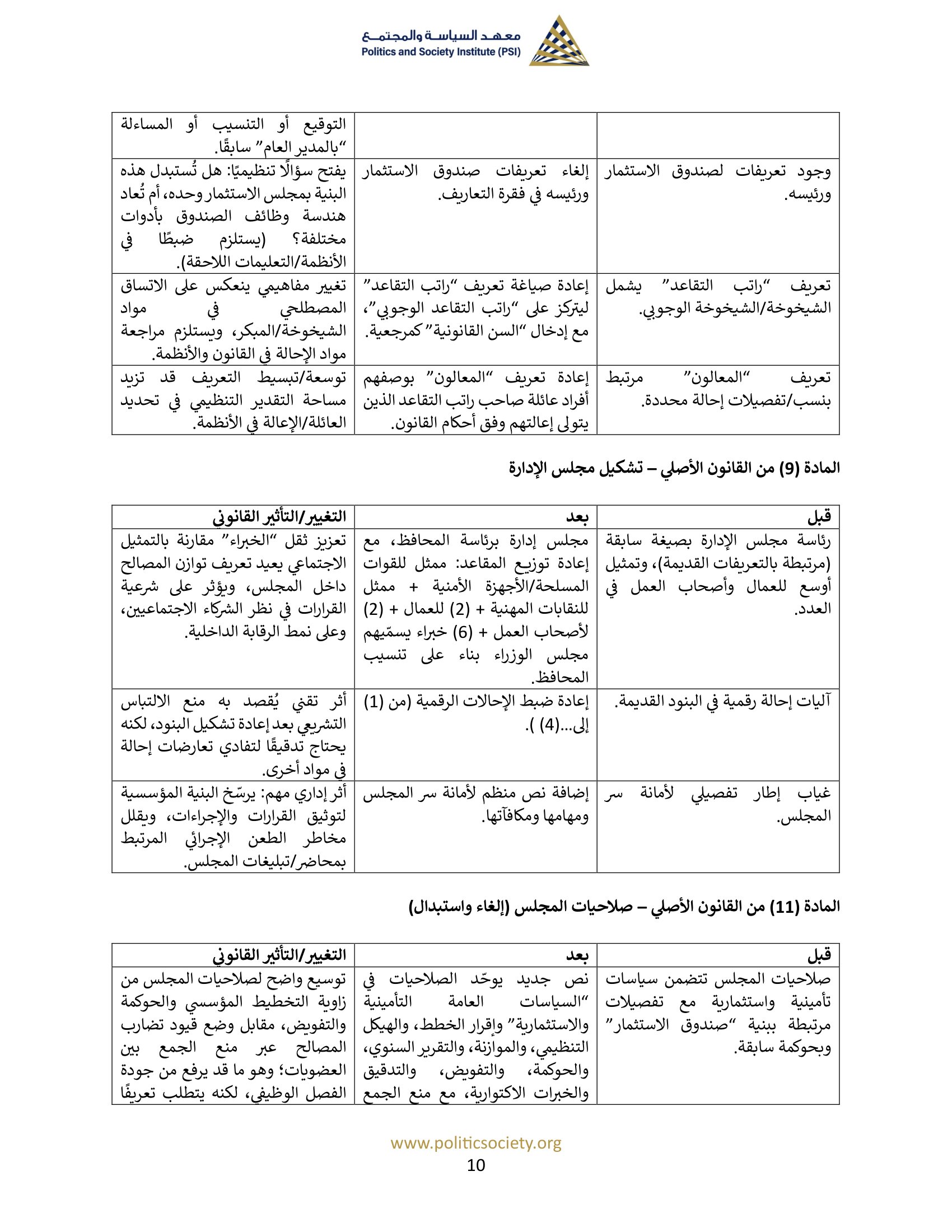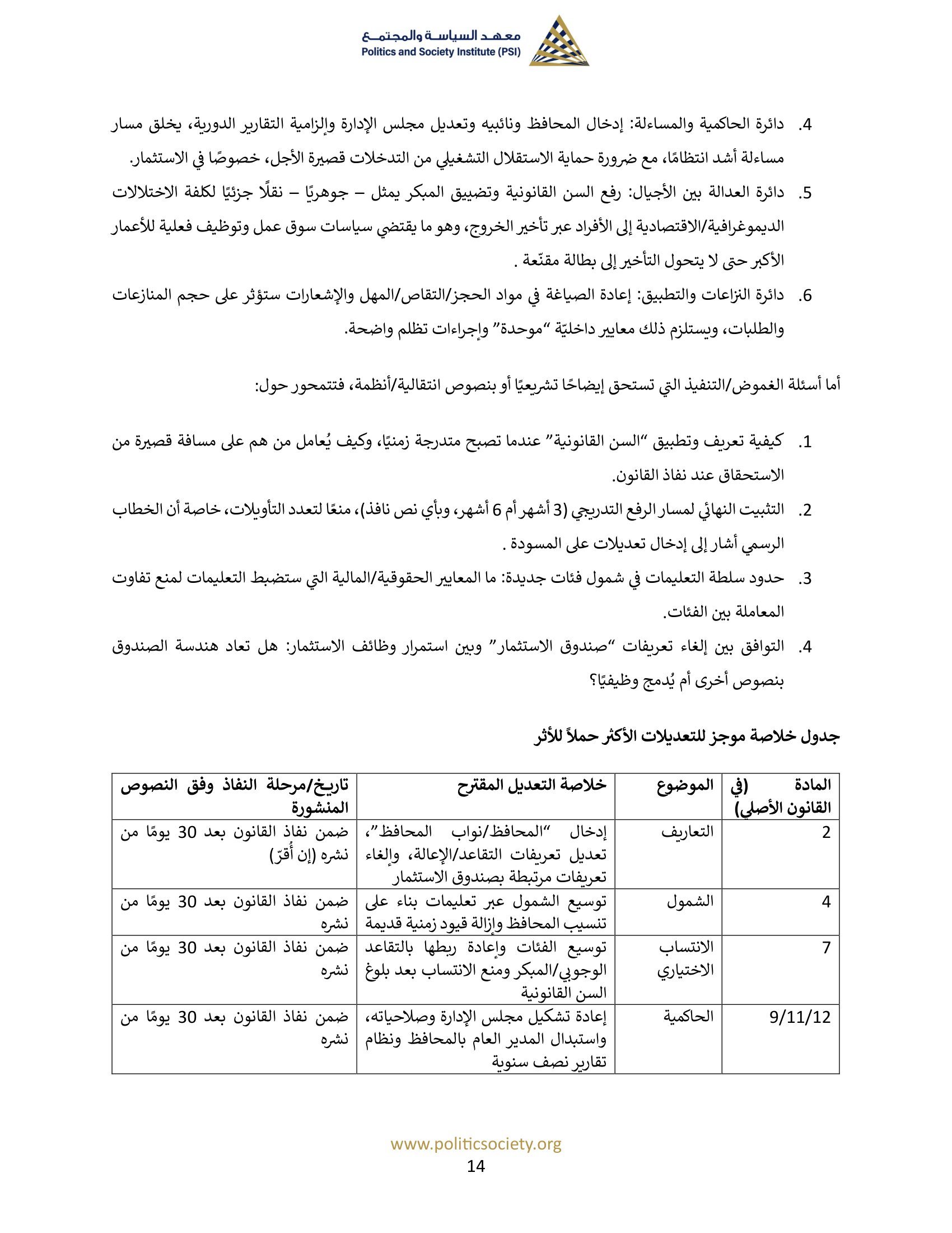 * التعديلات المقترحة ليست تقنية فقط، بل تمثل إعادة هندسة للنظام (حوكمة، شمول، تقاعد، استدامة)