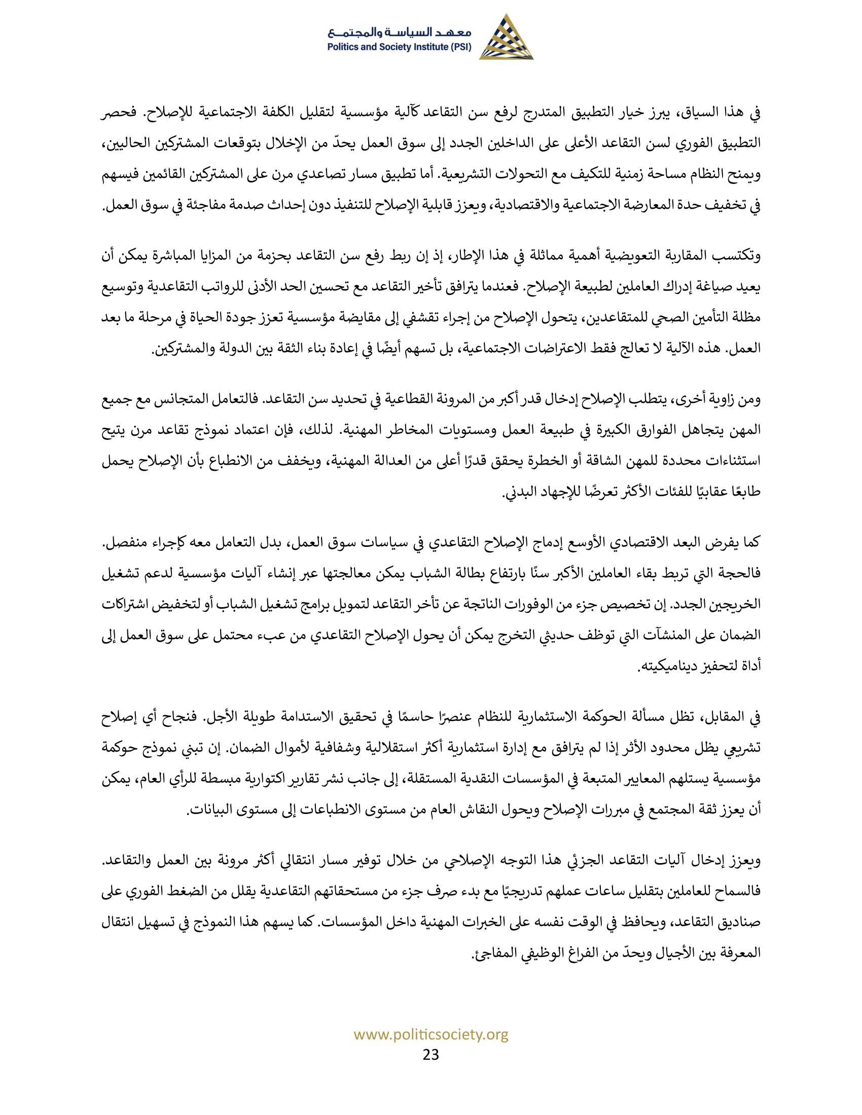 * جوهر الجدل ليس قانونيًا فقط، بل يتمحور حول ثقة المواطنين بقدرة نظام التقاعد على الوفاء بالتزاماته