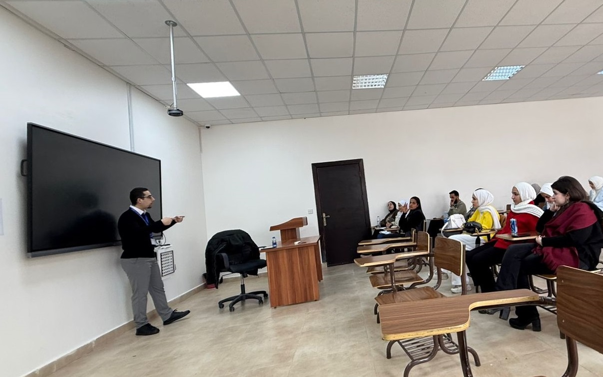 وشهدت الورشة تفاعلاً لافتًا من الطلبة حيث أتيح لهم المجال لتبادل الخبرات والتجارب الواقعية المرتبطة بالانخراط في سوق العمل، مما عزّز مفهوم التعلّم التشاركي، ووفر فرصة لمناقشة أبرز التحديات العملية وسبل التعامل معها، إضافةً إلى استعراض خطوات عملية تسهم في بناء مسار مهني ناجح، كما تناول اللقاء أبرز القوانين والتشريعات الناظمة لسوق العمل، وفي مقدمتها قانون العمل والعمال، إلى جانب التعريف بأنظمة ولوائح المؤسسة العامة للضمان الاجتماعي، وبيان حقوق وواجبات الموظفين وأصحاب العمل، مع ربط ذلك بخصوصية العمل في القطاع الصيدلاني، مما يسهم في تعزيز الوعي القانوني والمهني لدى الطلبة.