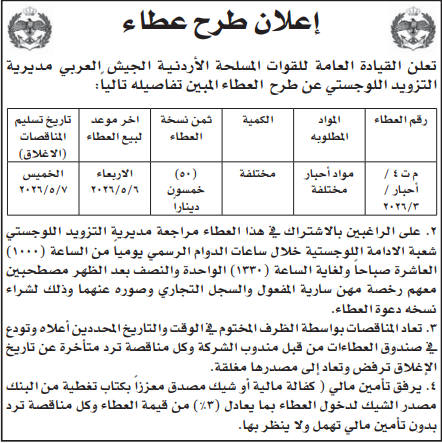 عطاء شراء احبار للقيادة العامة للقوات المسلحة