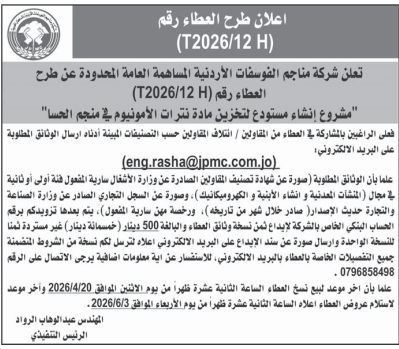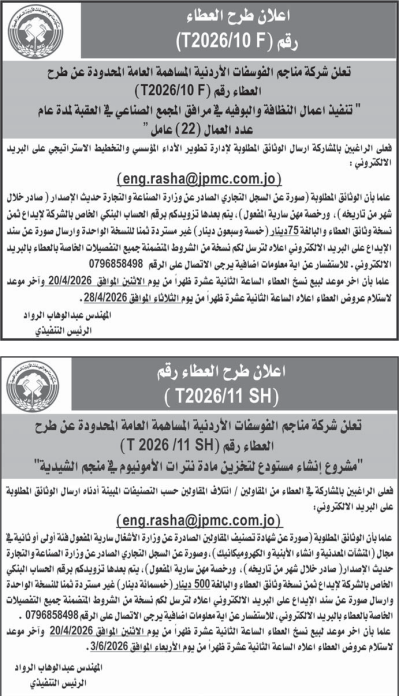 عطاءات صادرة عن شركة مناجم الفوسفات