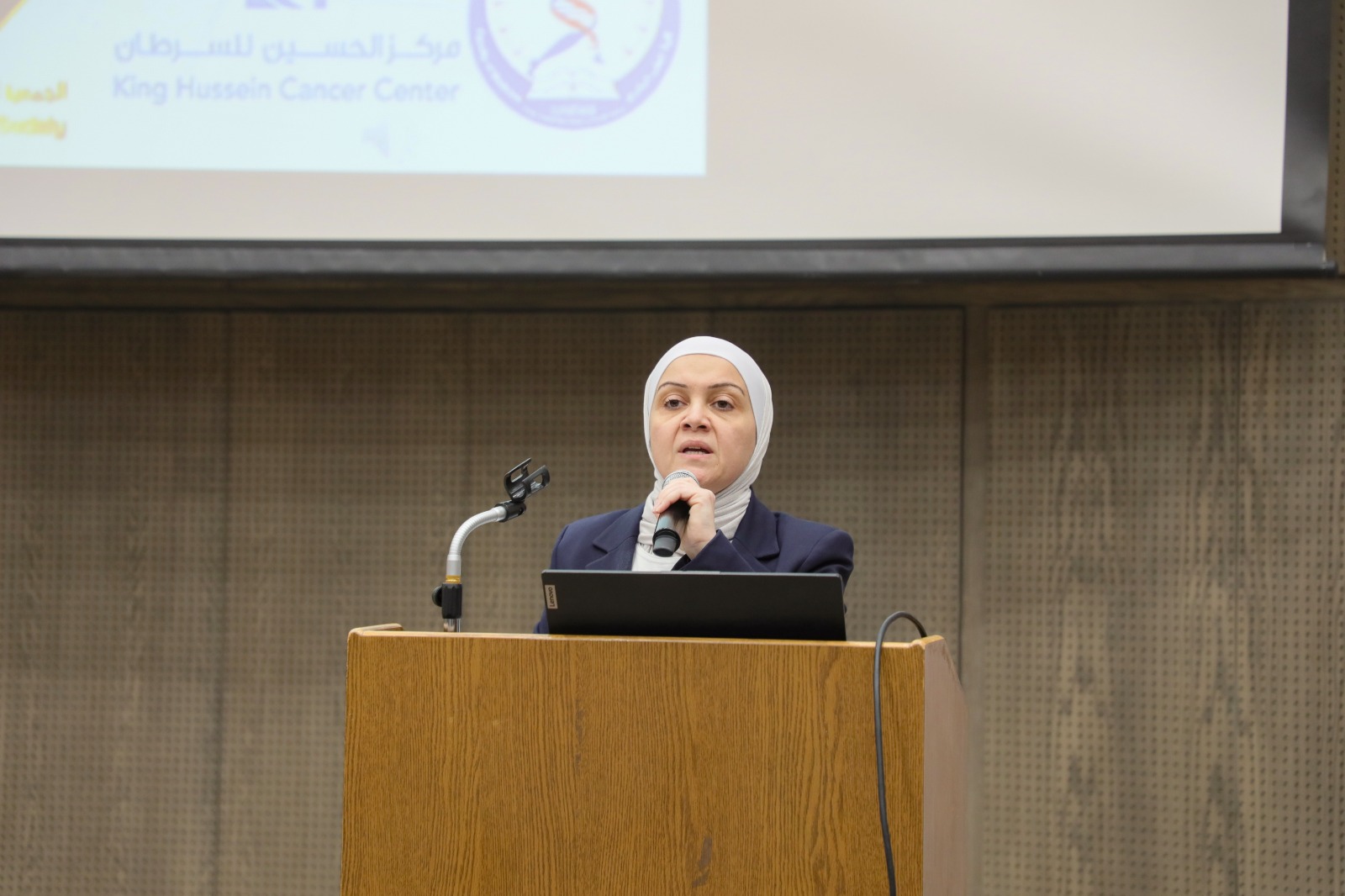 بدورها تناولت السيدة شهاب عن منتجات التبغ والنيكوتين الإلكترونية ومخاطرها وطرق الإقلاع عنها، مؤكدةً على أهمية اتباع الدليل الإرشادي للإقلاع عن التدخين، كما تطرقت إلى عدد من الحقائق عن واقع السرطان في الاردن من حيث النوع، ونسبه بين فئات المجتمع، وتحدثت عن خدمات عيادات الاقلاع عن التدخين المنتشرة في المملكة، ودعت الطلبة إلى الاطلاع على بيان مركز الحسين للسرطان بشأن انتشار السجائر الإلكترونية الذي كشف عن ارتفاع نسبه انتشارها بين فئات المواطنين، مبينة ان مركز الحسين للسرطان نشر ورقة توصيات شاملة لمواجهة الانتشار المقلق للسجائر الإلكترونية في الأردن خاصة بين الشباب، وتوصياتها بتشديد الرقابة على هذه المنتجات وتوفير خدمات الإقلاع عنها، مؤكدة ضرورة اتخاذ إجراءات وقائية عاجلة لحماية المجتمع.
