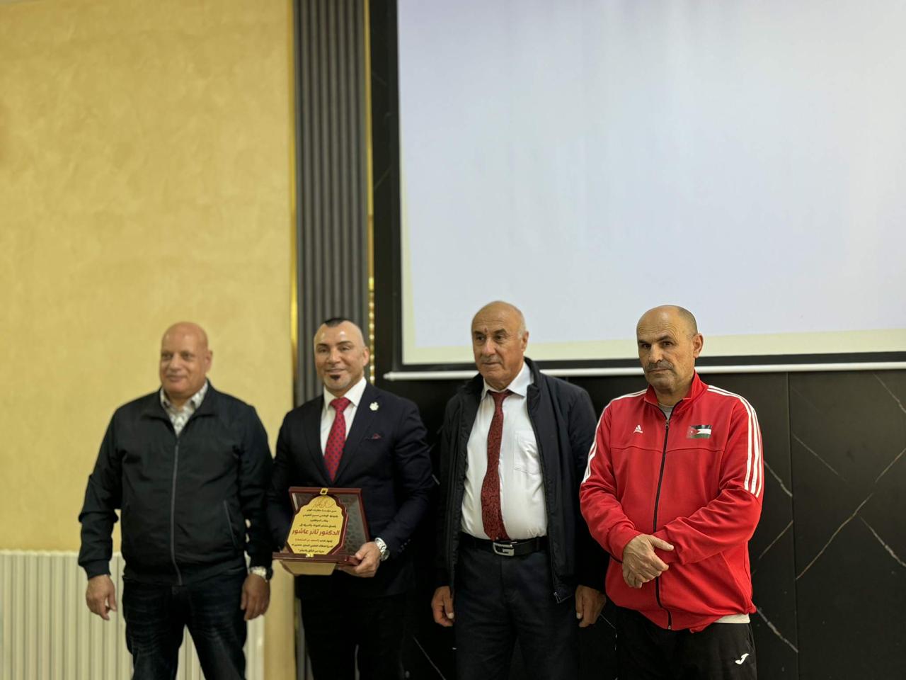 وفي ختام الفعالية، قام الإعلامي الأستاذ حسين النعيمي بتكريم الدكتور ثائر عاشور، بحضور عميد شؤون الطلبة في الجامعة وعدد من عمداء الكليات وأعضاء الهيئة التدريسية، تقديراً لجهوده في تقديم محتوى تدريبي نوعي يخدم الطلبة ويسهم في تعزيز وعيهم الذاتي وتنمية قدراتهم.