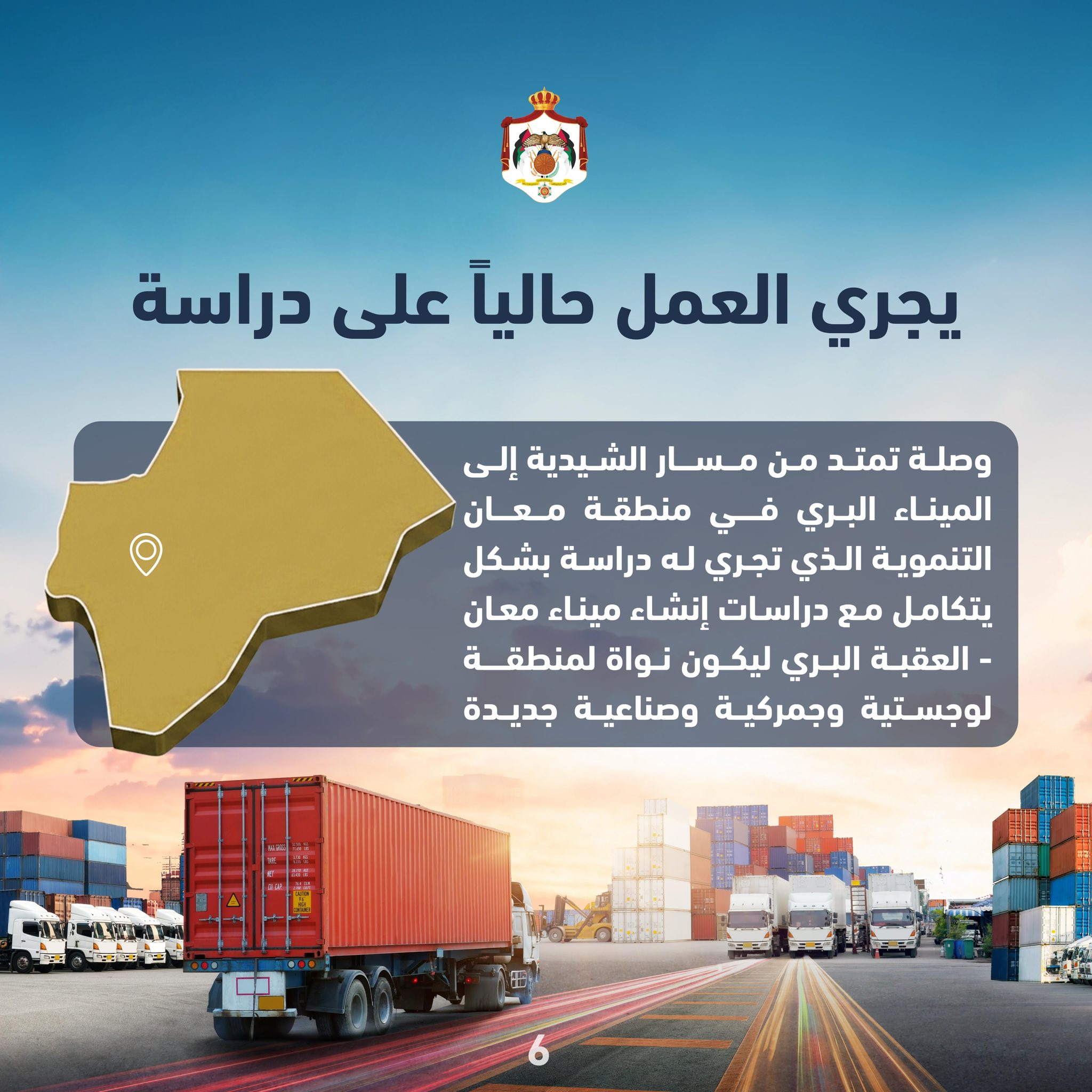 وفي سياق متصل، يجري العمل حالياً على دراسة إنشاء وصلة تمتد من مسار الشيدية إلى الميناء البري في منطقة معان التنموية، ضمن رؤية تكاملية مع مشروع إنشاء ميناء معان–العقبة البري، ليكون نواة لمنطقة لوجستية وجمركية وصناعية جديدة.