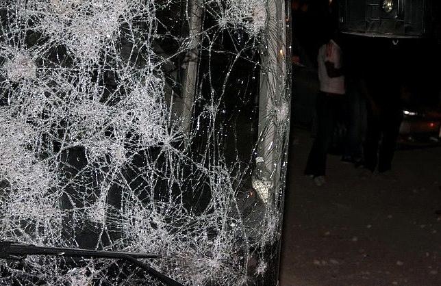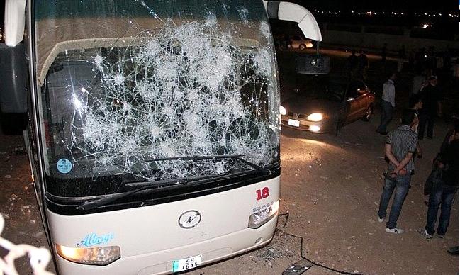 قيام جماهير نادي الرمثا برمي الحجارة على جمهور الفيصلي الفاءز في المباراة ....