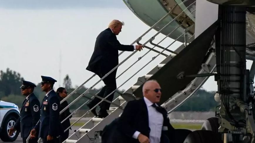 صعد إلى طائرته مُسرعًا عبر سلم صغير .. ترمب يتعرض لحادثة مشبوهة