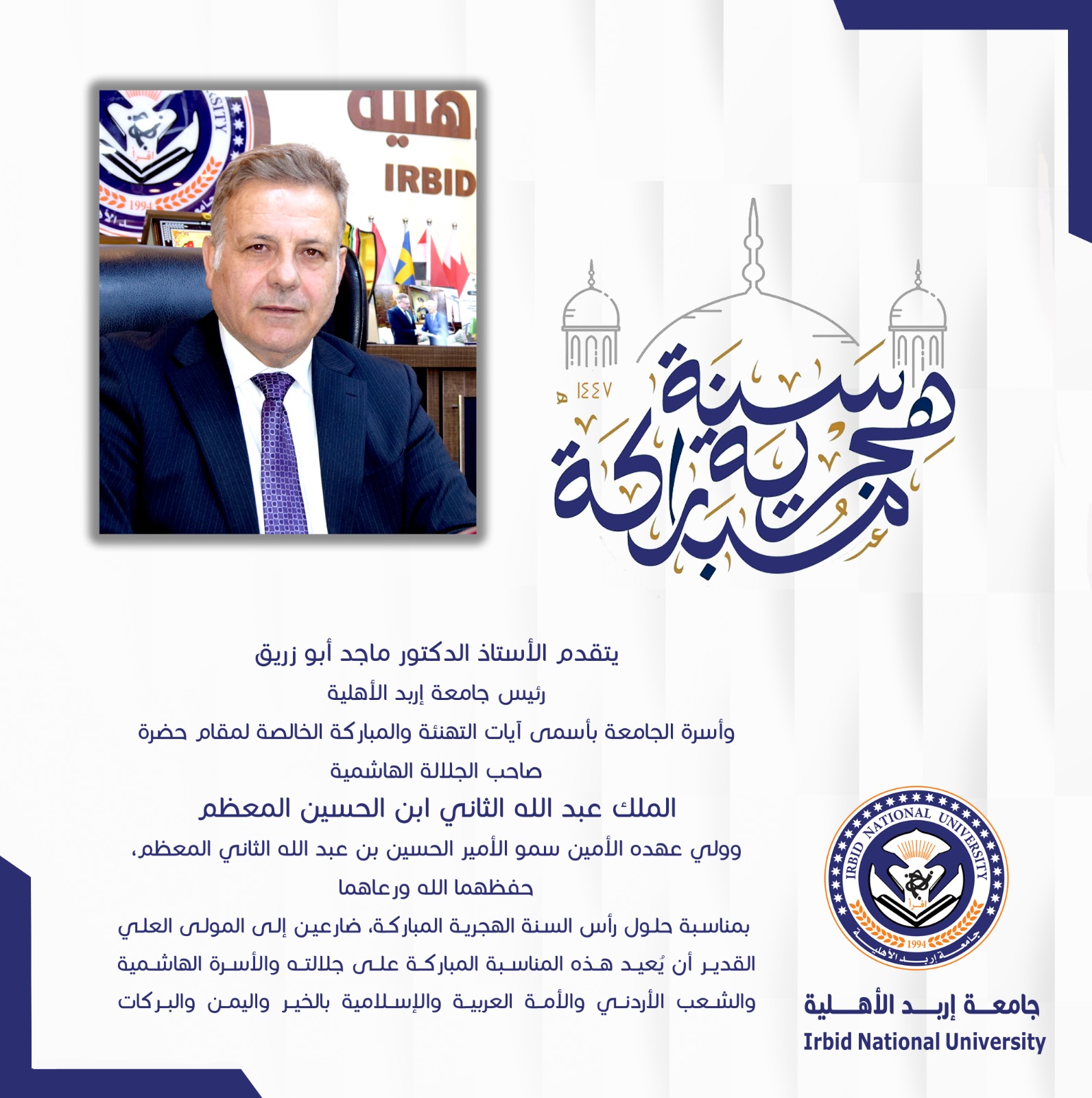 جامعة إربد الأهلية تهنئ جلالة الملك بمناسبة حلول رأس السنة الهجرية