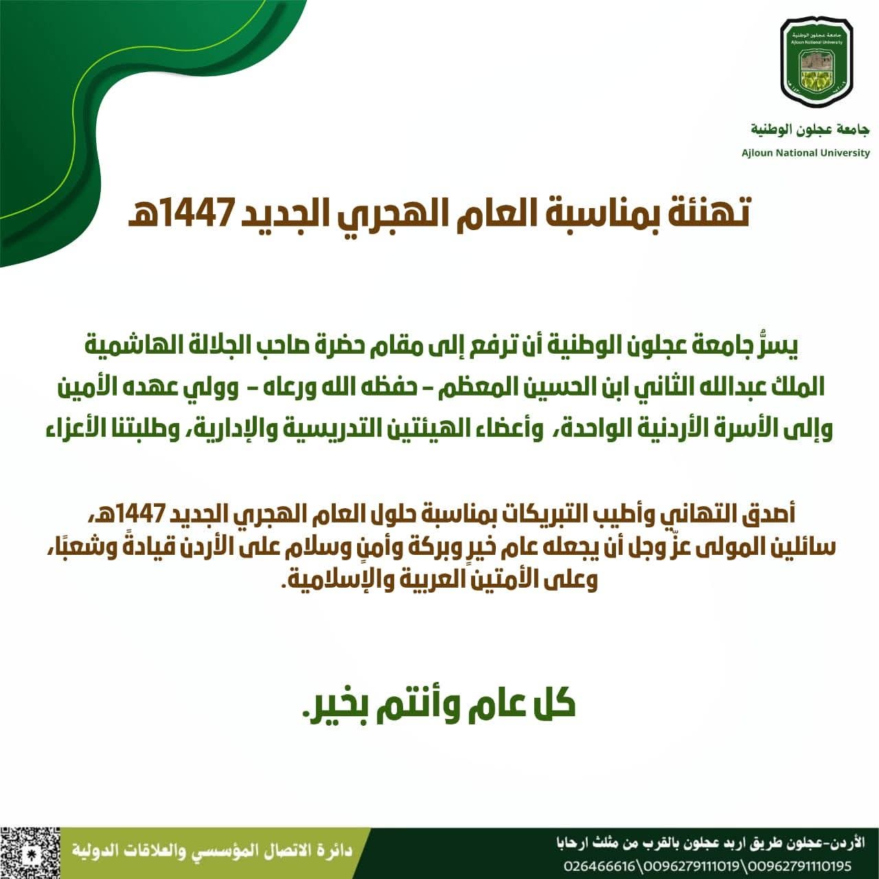 جامعة عمان العربية تهنئ بمناسبة رأس السنة الهجرية1447