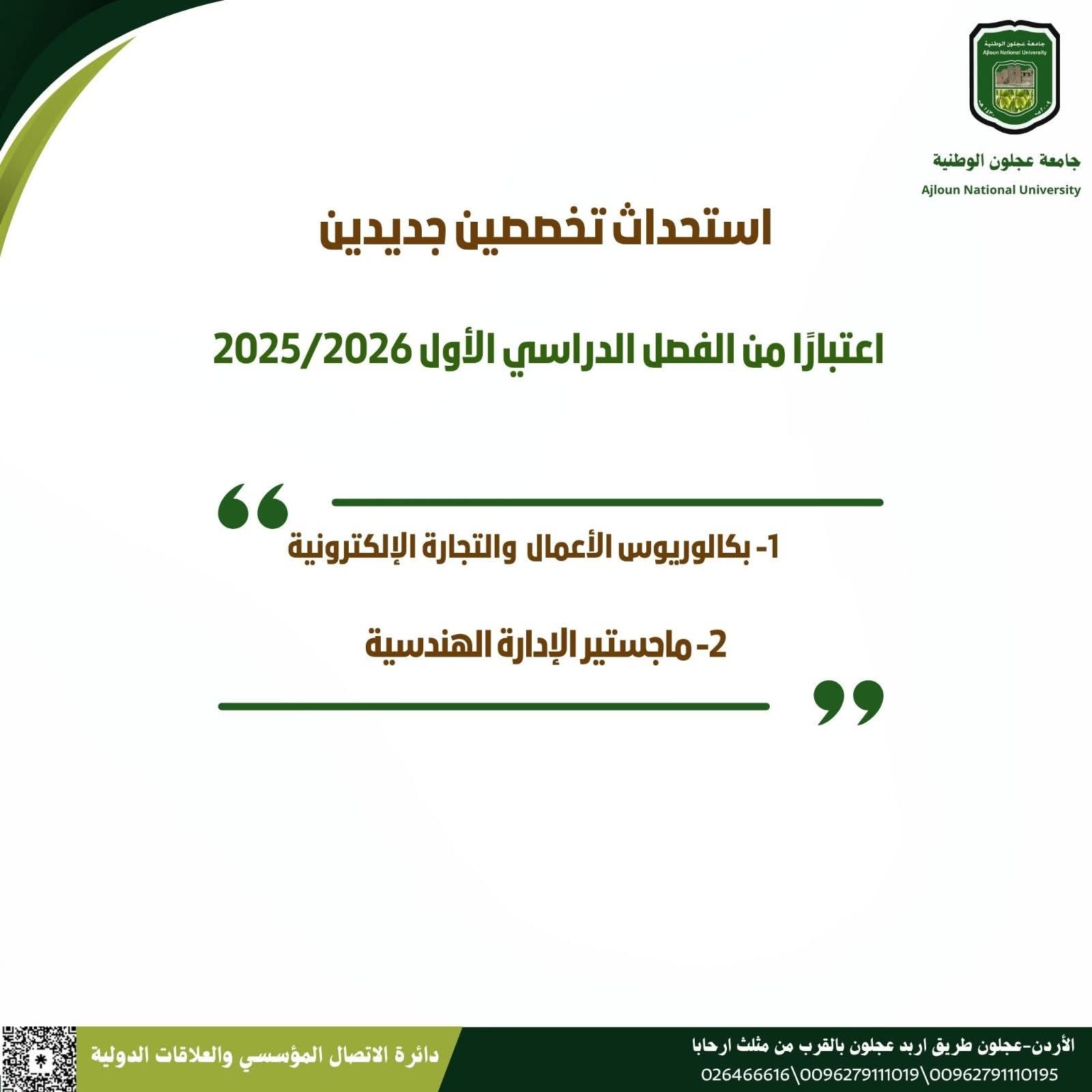 مجلس التعليم العالي يوافق على استحداث تخصصين جديدين في جامعة عجلون الوطنية