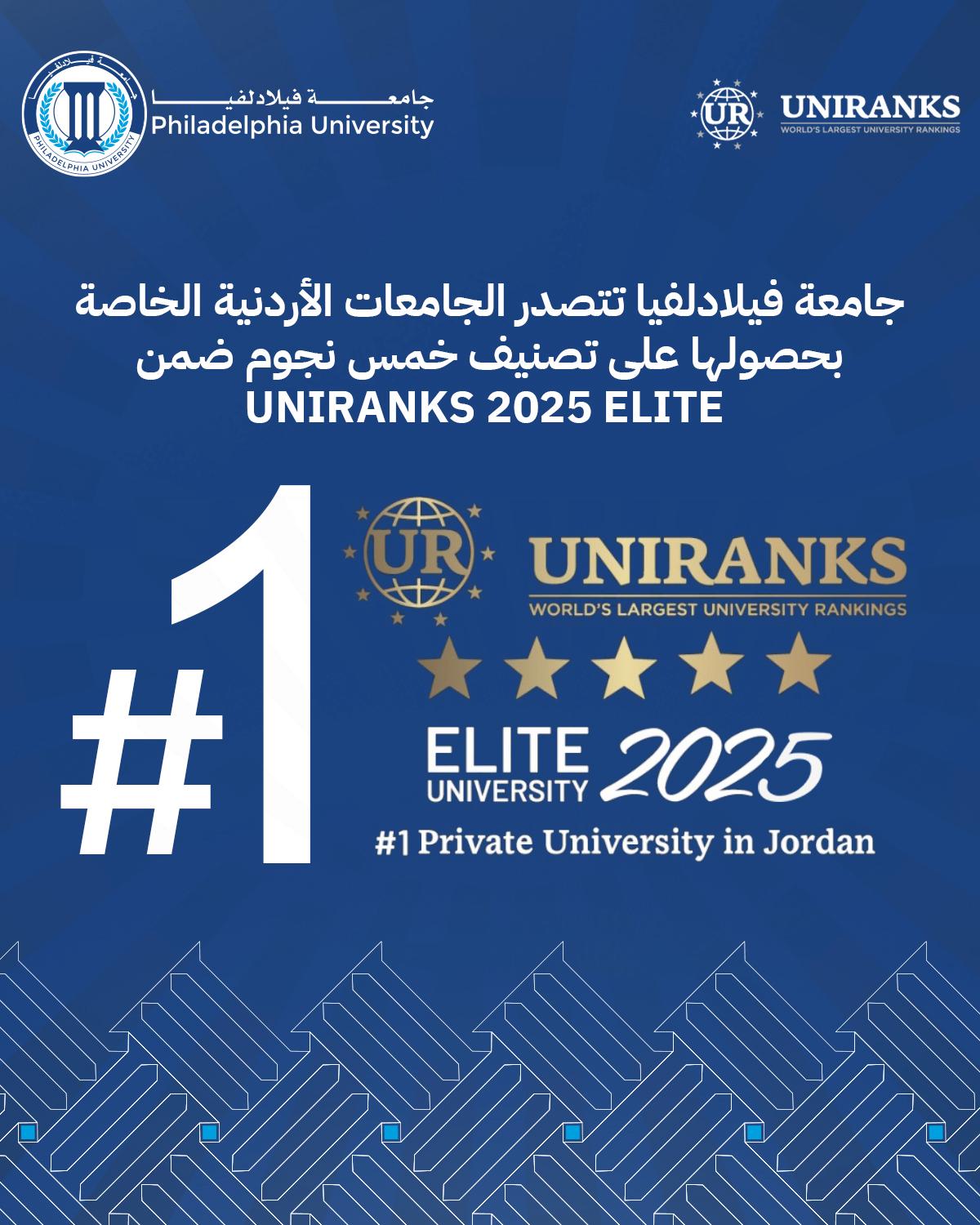 جامعة فيلادلفيا تتصدر الجامعات الأردنية الخاصة بحصولها على تصنيف خمس نجوم ضمن UNIRANKS 2025 ELITE