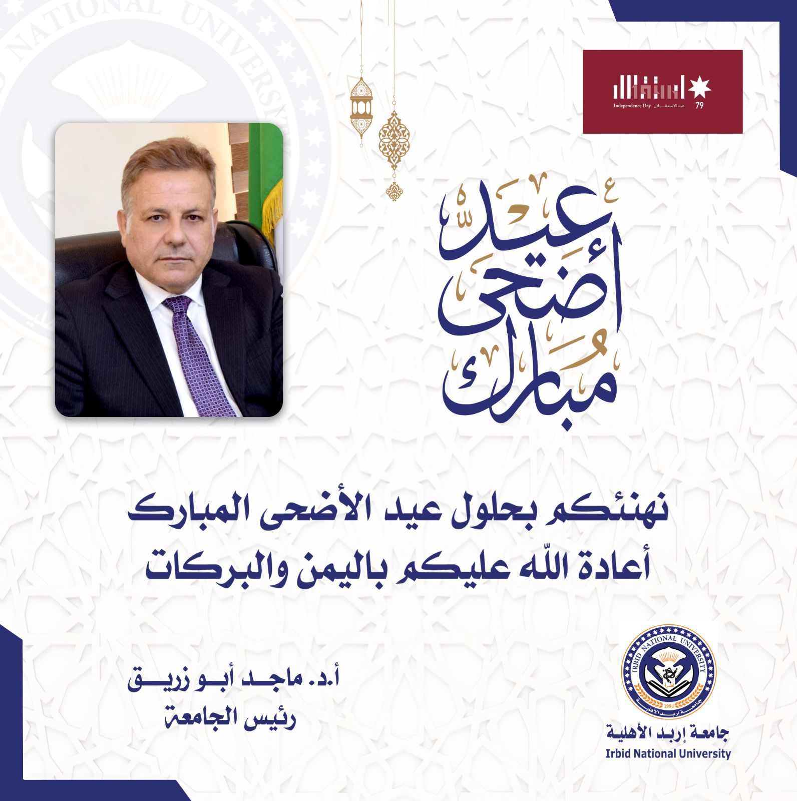 جامعة إربد الأهلية تهنئ قائد الوطن بمناسبة عيد الأضحى المبارك