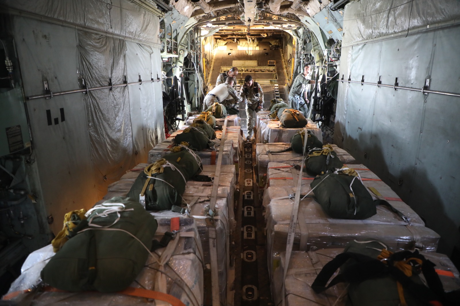 الجيش: إنزال 75 طنًا من المساعدات الغذائية والإغاثية لقطاع غزة