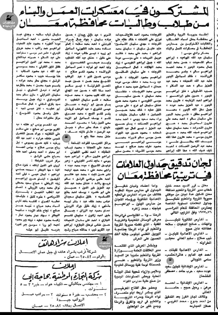 من أرشيف الصحف .. مشاركة مدارس معان في معسكرات العمل والبناء
