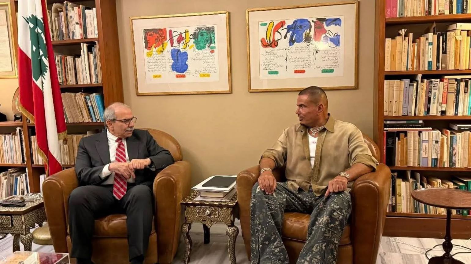 "بيروت تحبك" .. رئيس وزراء لبنان يستقبل عمرو دياب في منزله