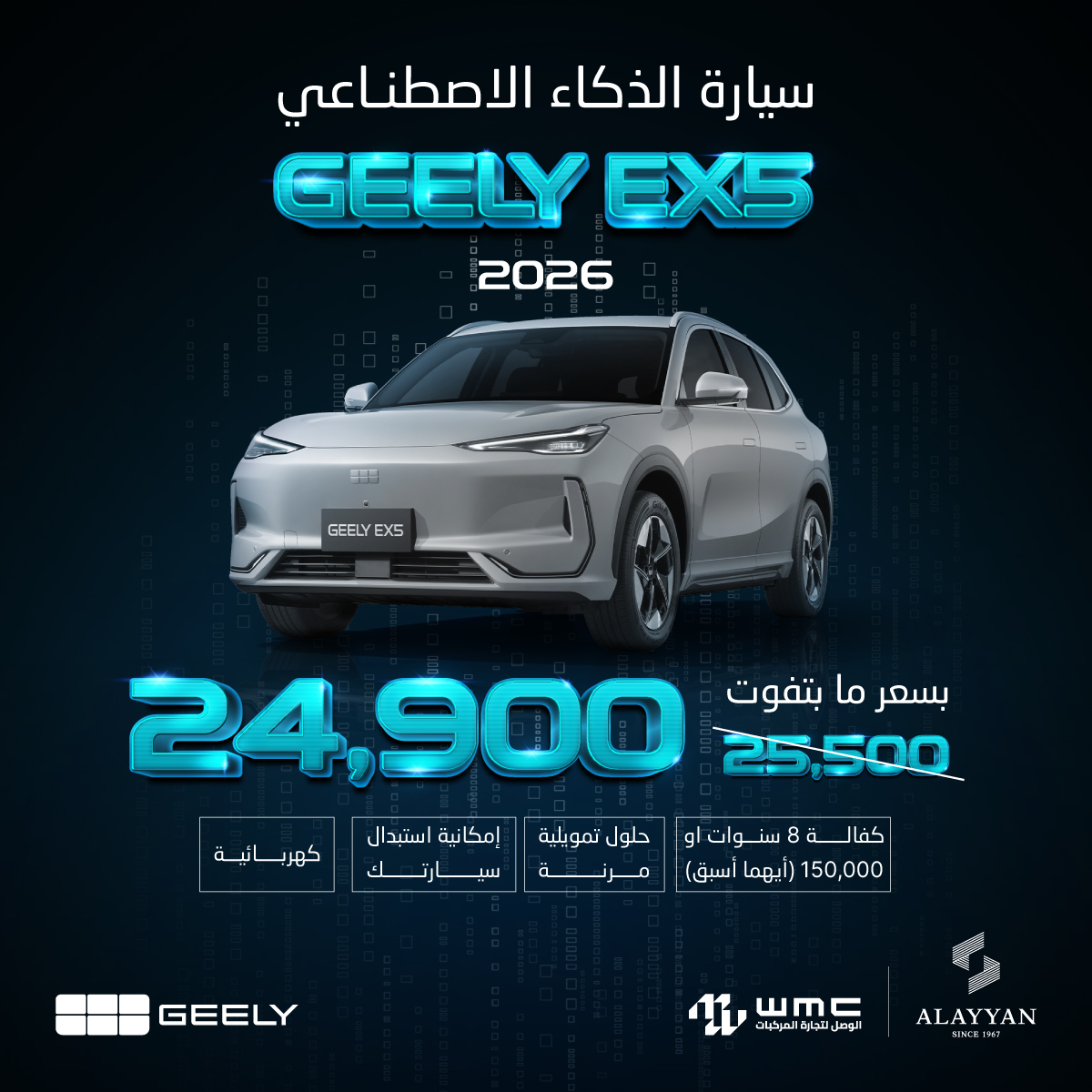 Geely EX5 أول سيارة ذكية في الأردن، الآن بسعر جديد يبدأ من 24,900 دينار فقط
