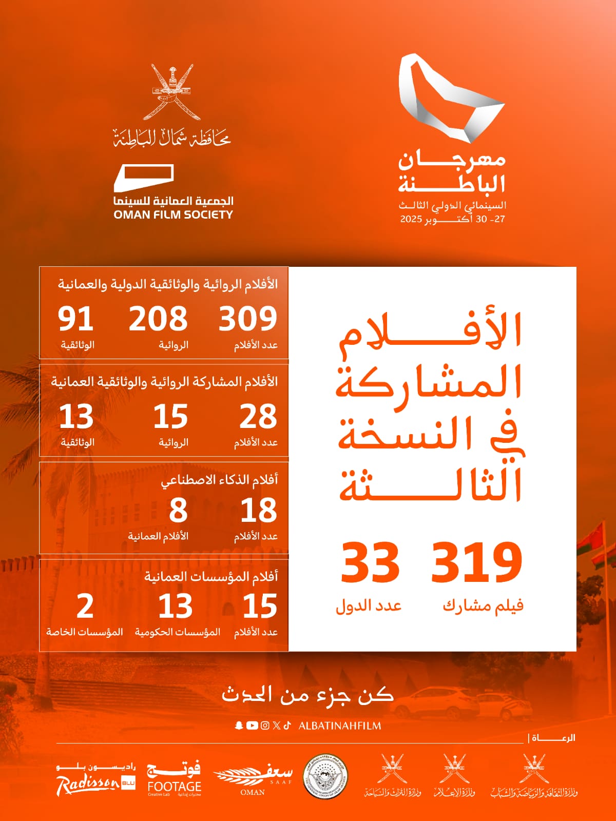 سلطنة عمان .. 319 فيلمًا من 33 دولة في مهرجان الباطنة السينمائي