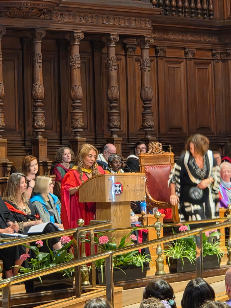 جامعة أدنبره تكرّم العين عبلة عماوي وتفاعل مع حديثها عن الملك وغزة (فيديو)