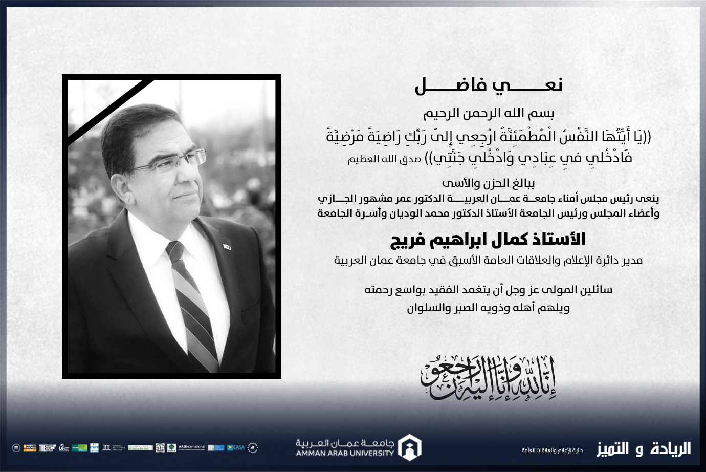 جامعة عمان العربية تنعى الأستاذ كمال ابراهيم فريج