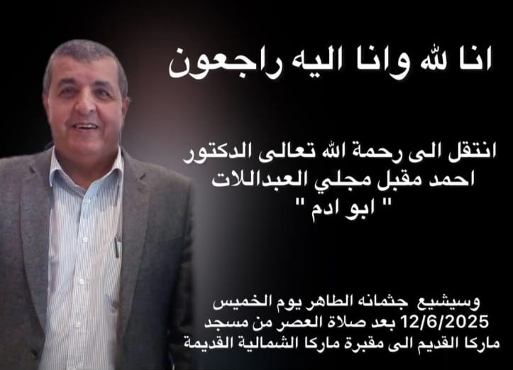 الدكتور احمد مقبل العبداللات (ابو آدم) في ذمة الله