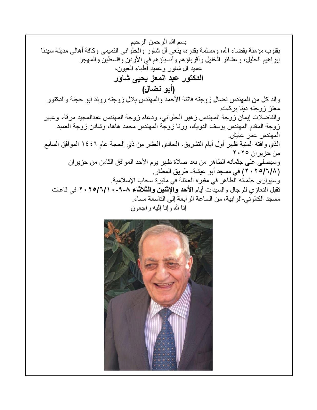 الدكتور عبدالمعز شاور (أبو نضال) في ذمة الله