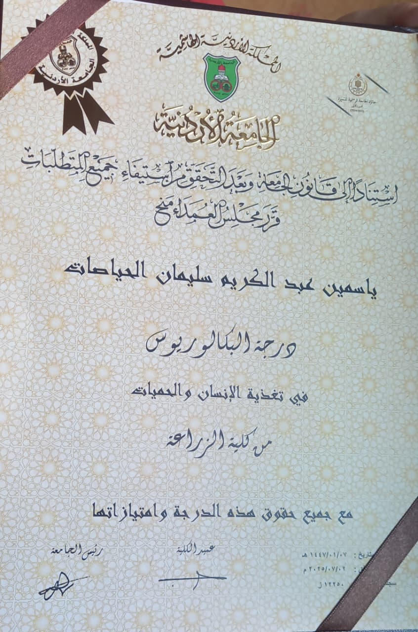 الدكتورة وعد ناصر احمد المناصير .. مبارك التخرج