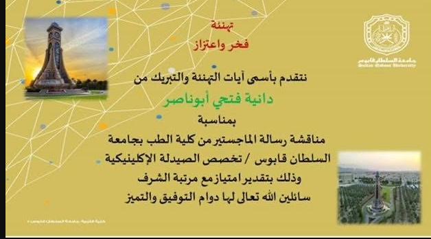 الدكتورة دانيه ابو ناصر .. مبارك الماجستير من جامعة السلطان قابوس