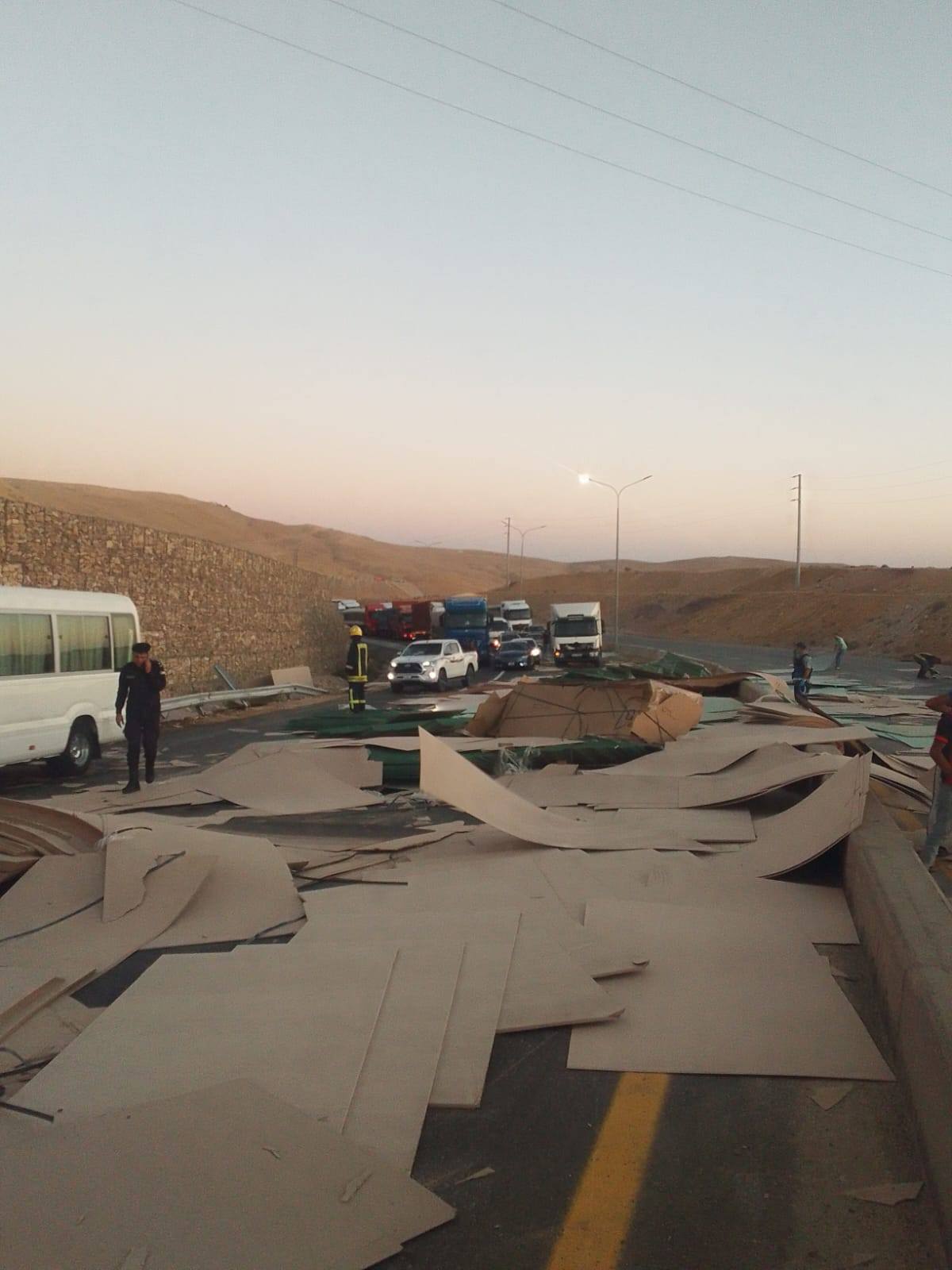 تدهور مركبة وسقوط حمولتها على طريق رأس النقب