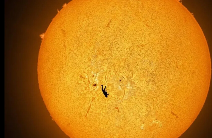 لقطة فريدة لظل بشري في السماء أمام الشمس!